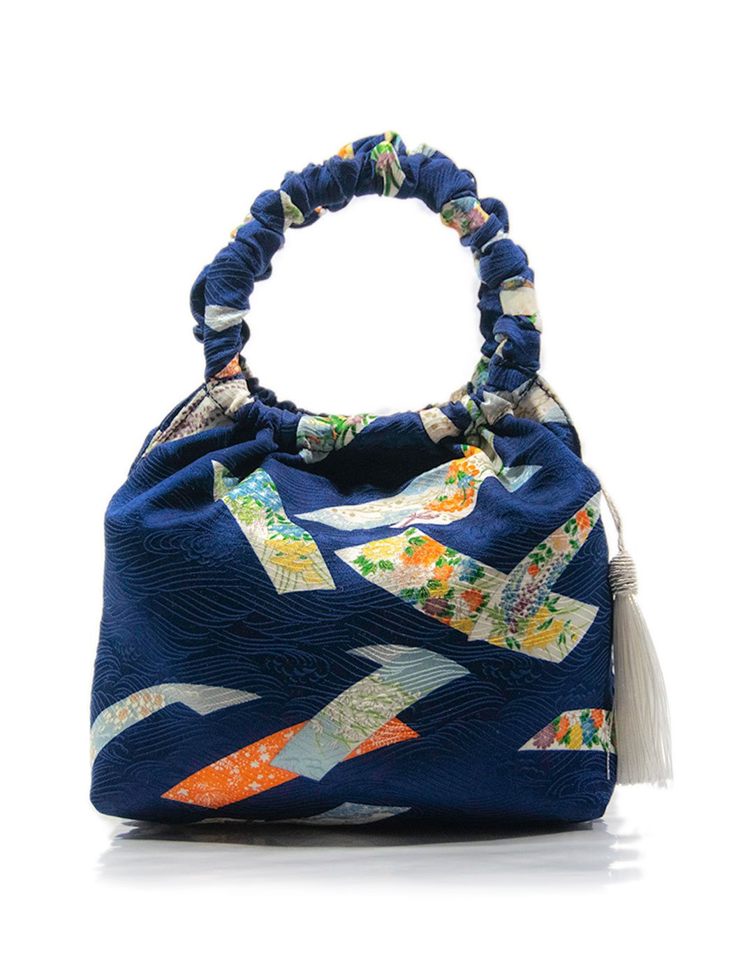 Navy, white, yellow, orange, green